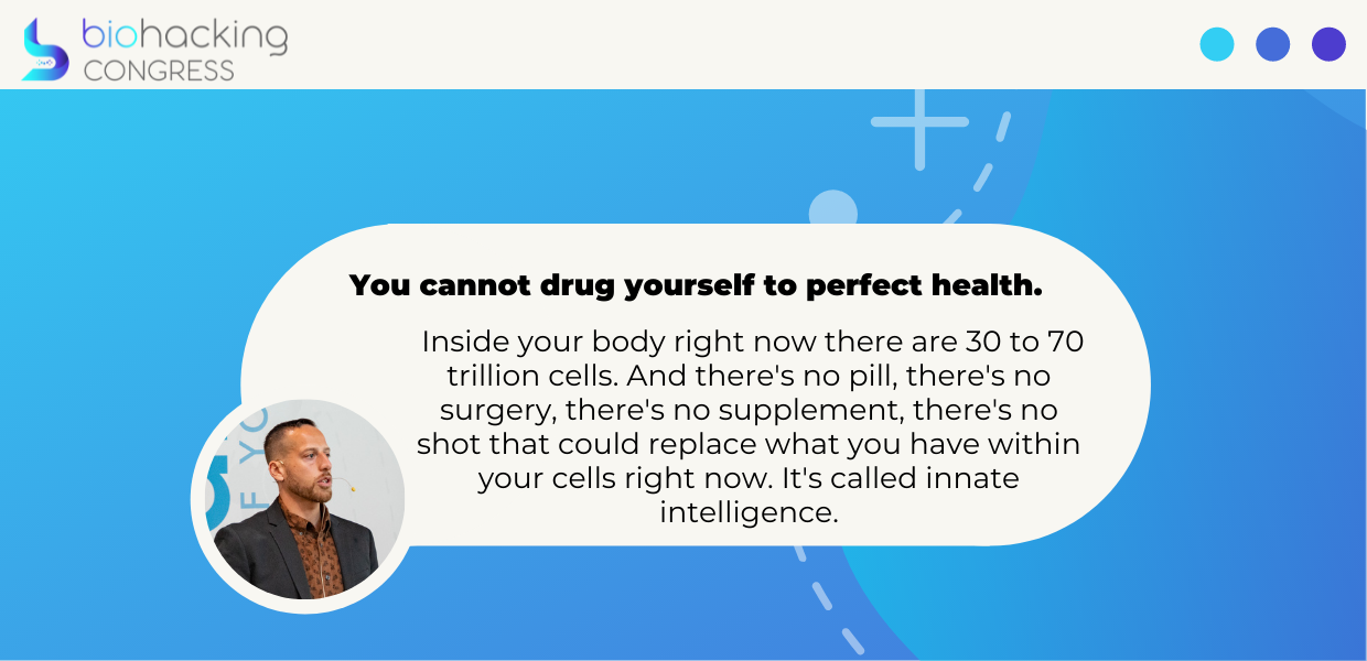 You cannot drug yourself to perfect health. Inside your body right now there are 30 to 70 trillion cells. And there's no pill, there's no surgery, there's no supplement, there's no shot that could replace what you have within your cells right now. It's called innate intelligence.