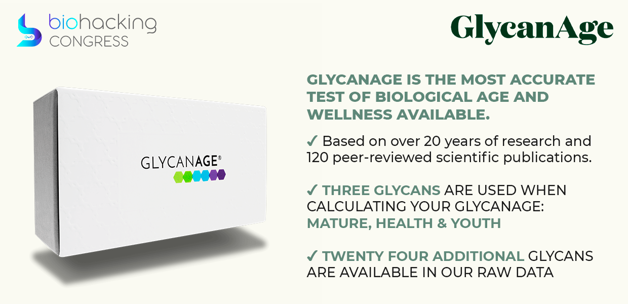 If you want to try GlycanAge - the first biological age glycan-based product to market with proven responsiveness to interventions that beneficially affect the biology of aging, check it out at the TopBiohacks section on our website. Subscribe to BiohackingCongress Newsletter and get valuable discounts!