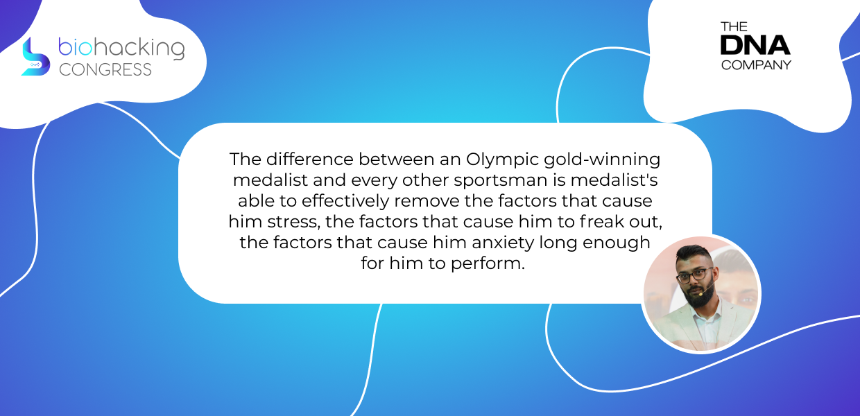 I'll give an example, an Olympic medalist will train for months and years because the event only happens once every four years, and they're consistently breaking their records in practice. But here's what happens when they get to their event they're high up on endorphins. They're super pumped up and then they get a phone call and it's the mom and she says "I ain't making it to your event. I'm not going to see you perform. I'm not going to be able to get there in time. I'm going to miss this", and a lot of these Olympic level athletes, they're probably training in the favelas in Brazil, or they're training somewhere, so this is the only chance for their parents to see them. Think about what that does to your psychology. Think about what that does to your ability to focus. So an Olympic gold-winning medalist, the difference between him and everyone else there is he's able to effectively remove the factors that cause him stress, the factors that cause him to freak out, the factors that cause him anxiety long enough for him to perform the same way.