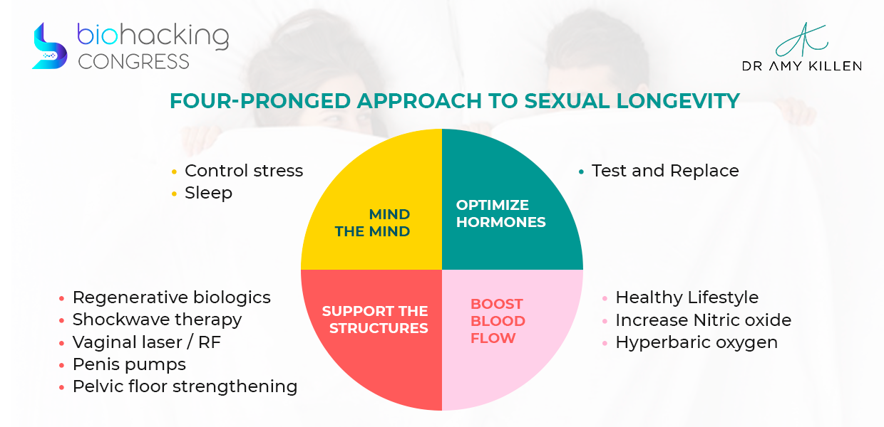Dr. Amy shared her four-pronged approach to achieving sexual longevity. It is the sexponential tools and tricks that you can use.