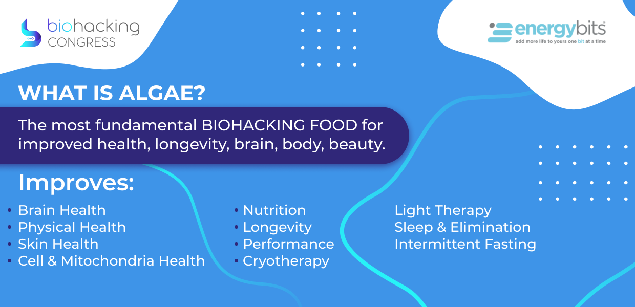 “Algae is the most scientifically documented food in the world. Almost 100,000 scientific studies are documenting the biohacking benefits of algae. Algae is scientifically proven to improve wellness, energy, nutrition, detox, beauty, immune health, longevity, and reduce inflammation or disease.”