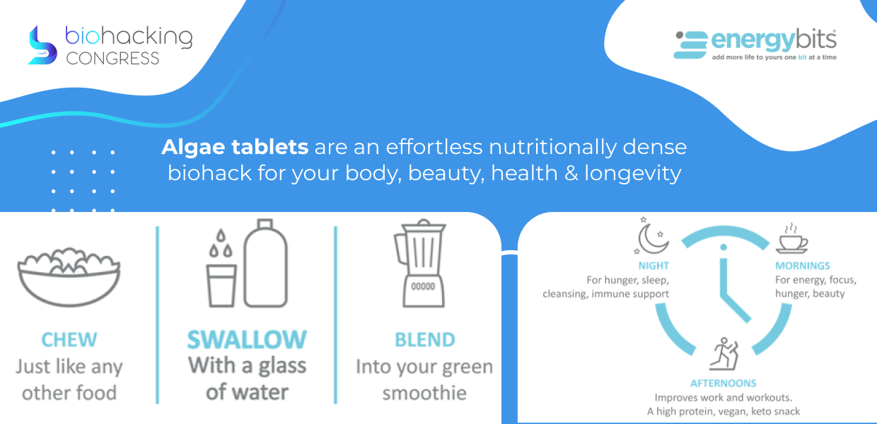 If you want to try ENERGYbits® Algae Tablets by ENERGYbits Inc. with a discount, go to the Top Biohacks section.