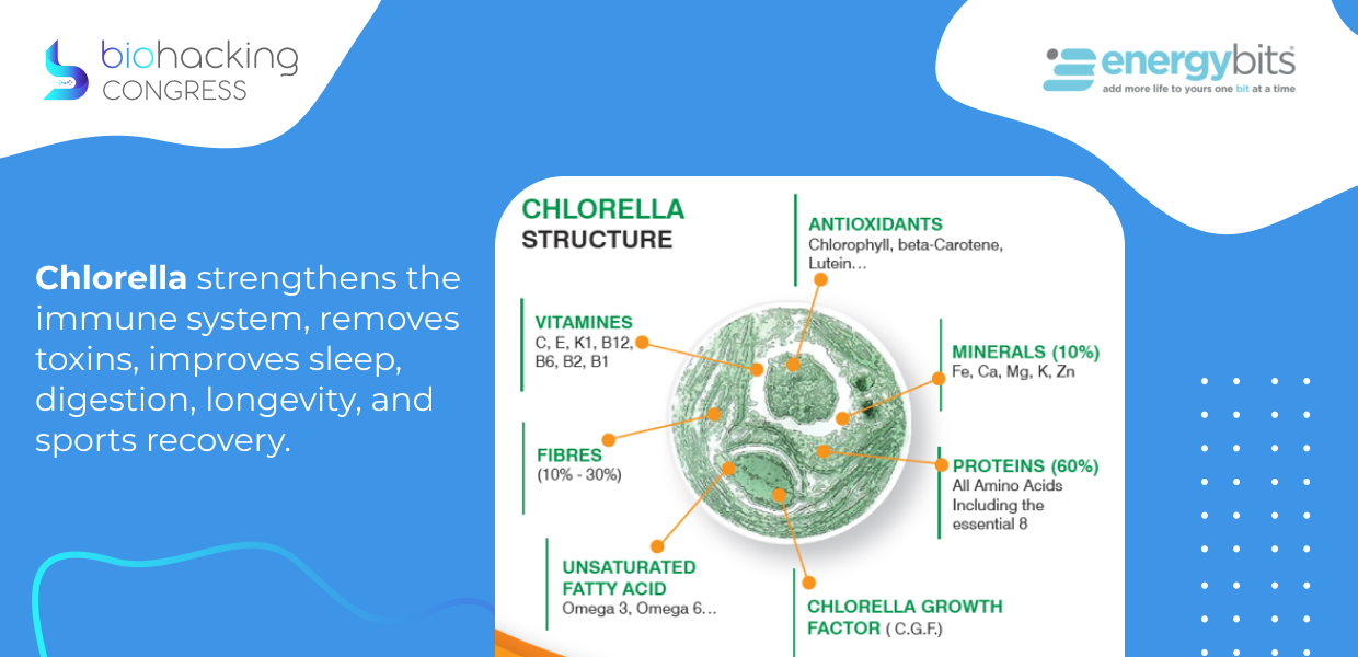 "Chlorella strengthens the immune system, removes toxins, improves sleep, digestion, longevity, and sports recovery.